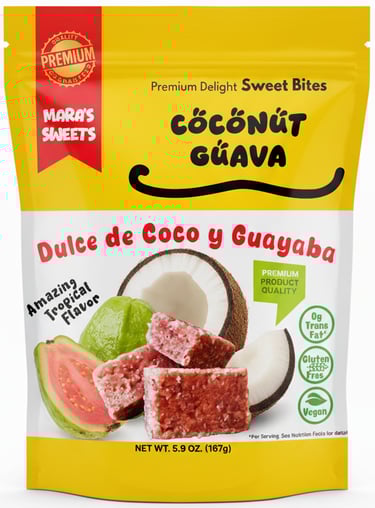 Indulge in the exotic taste of our Coco Guava Sweet Bites! These delightful treats combine the rich, creamy flavor of fresh coconut with the tangy sweetness of ripe guava, creating a uniquely delicious snack. Perfectly bite-sized, each piece encapsulates a burst of tropical paradise in every bite.