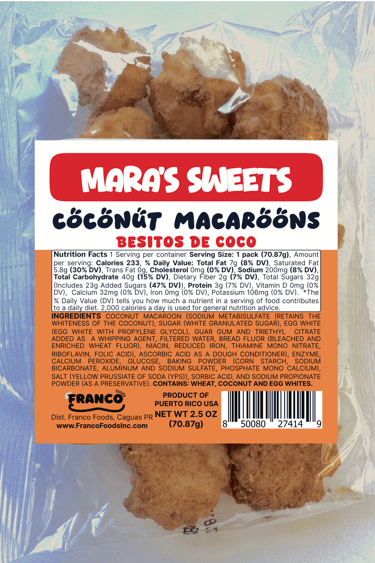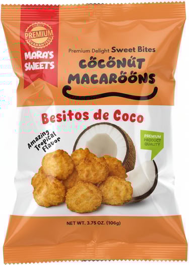 Indulge in our Premium Coconut Macaroons, exquisite coconut sweet bites that burst with rich, authentic coconut flavor. Each convenient pack is filled with perfectly sized macaroons that are golden brown on the outside and moist on the inside. Perfect for snack time, dessert, or even gifting, these delightful treats are sure to satisfy your coconut cravings. Made from high-quality ingredients and baked to perfection, these macaroons offer a delicious tropical escape in every bite. Packaged in an elegant resealable bag to maintain freshness, they make a fantastic addition to your pantry.