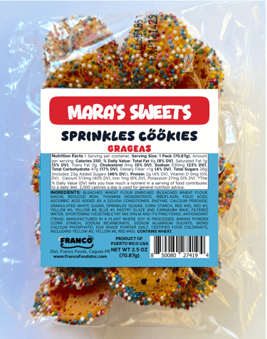 Indulge in the exquisite flavor of Mara's Sweets' Premium Delight Sprinkles Cookies. Each offers richly flavored cookies generously topped with vibrant, colorful sprinkles, making them the perfect treat for any occasion. These delightful bites are sure to satisfy your sweet tooth with their melt-in-your-mouth texture and eye-catching presentation. Ideal for sharing or enjoying on your own, don't miss out on this delicious experience!
